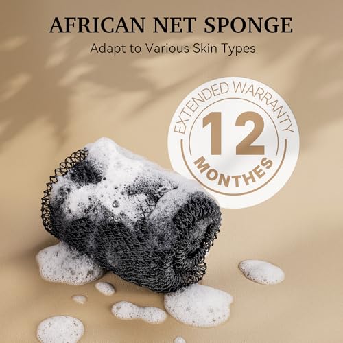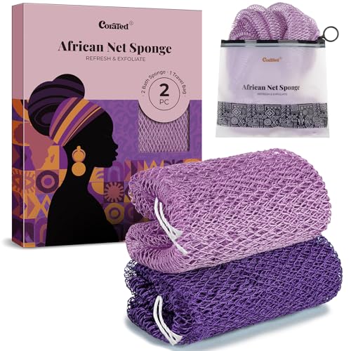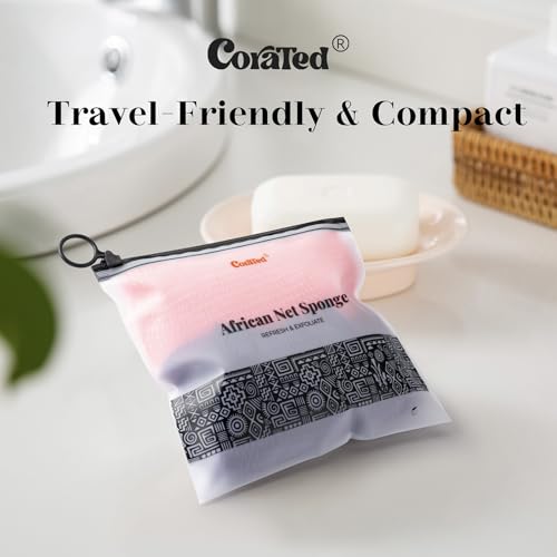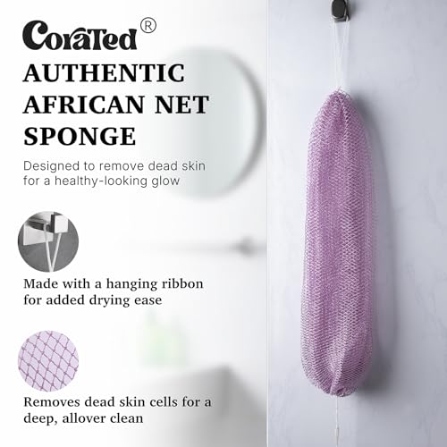 CORATED African Net Sponge Authentic, Shower Loofah Exfoliating Bath Sponge, Body Scrubber for Women and Men Daily Use Body Care, Travel Portable Bath Accessories Spa Gifts