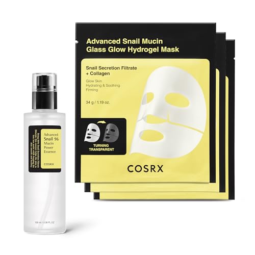 Specification: COSRX Snail 96 Essence + Hydrogel Mask 3EA- Advanced Snail 96 Mucin Serum and Glass Glow Hydrogel Collagen Face Masks, Travel Essentials, Stocking Stuffers, Korean Skin Care