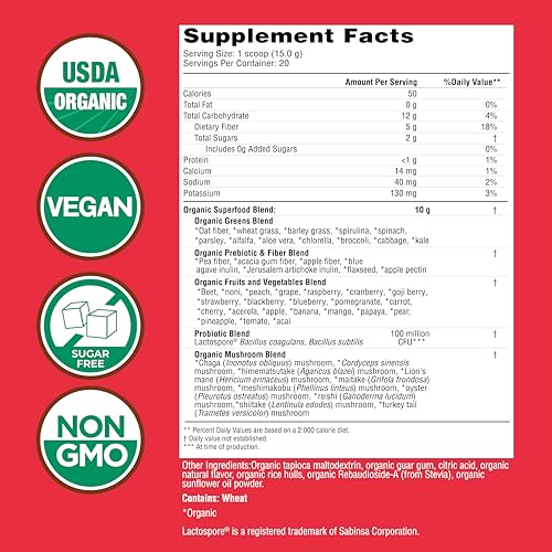 BOOST ENERGY, IMMUNE HEALTH & VITALITY – Thanks to the 50 USDA Organic whole food ingredients in each serving of Super Greens Natural flavor drink mix, you can find the vitamins, minerals, antioxidants and enzymes necessary to support overall wellness.