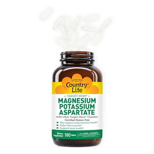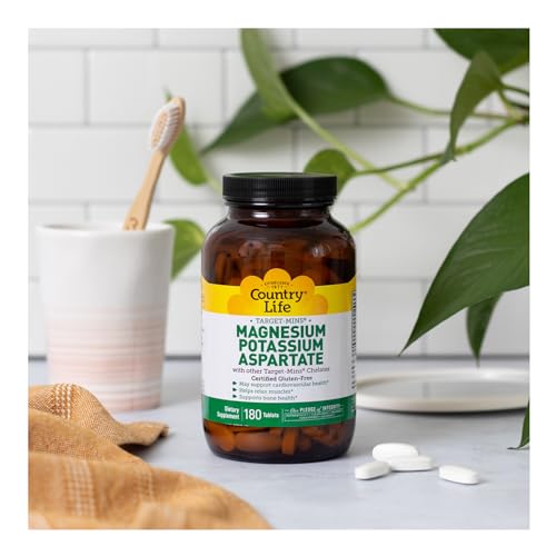 Country Life Magnesium and Potassium Supplement for Heart Health, Cardiovascular Support, Immune System and Bone Health, Gluten-Free
