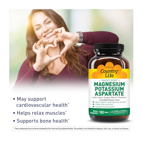Specification: Country Life Magnesium and Potassium Supplement for Heart Health, Cardiovascular Support, Immune System and Bone Health, Gluten-Free