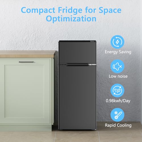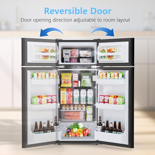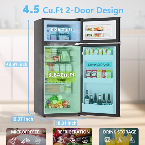 Specification: COWSAR 4.5 Cu.Ft Dorm Fridge With Freezer, 2-Door Compact Refrigerator With 2 Removable Shelves, 3 Level Adjustable Thermostat, Commercial Office Fridge for Bedroom, Kitchen, Apartment, Dorm, Black