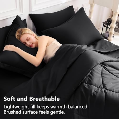 CozyLux Queen Comforter Set Black – Bed in a Bag Queen Size 7 Pieces, Luxury Soft Bed Set for All Seasons, Bedding Set with Down Alternative Comforter, Sheets, Pillowcases & Shams