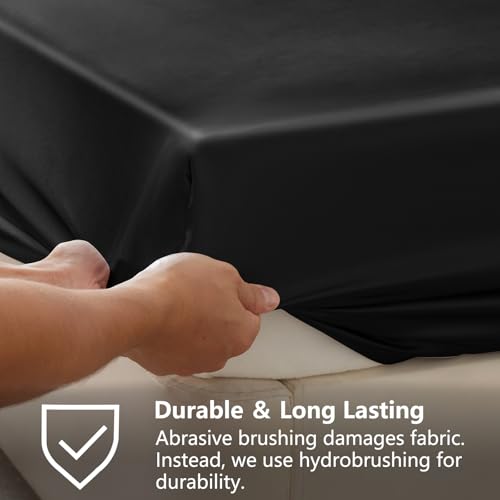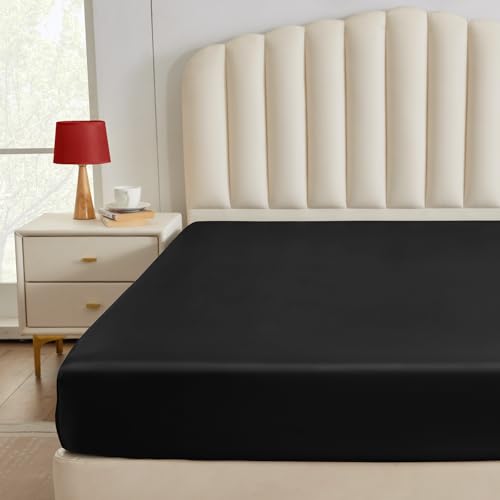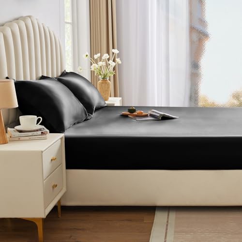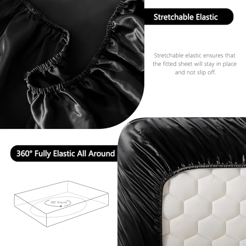 Specification: CozyLux Satin Fitted Sheet Queen Size, Black Silky Satin Bed Fitted Sheet Only with Microfiber, Deep Pocket, Single Bottom Sheet Sold Separately, Breathable, Smooth and Soft