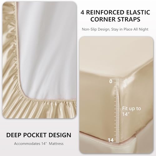CozyLux Satin Sheets Queen Size Bed Set – 4 Piece Silky Queen Sheet Set, Luxury Champagne Queen Sheets with Smooth and Soft Microfiber, Includes 1 Fitted Sheet, 1 Flat Sheet and 2 Pillowcases