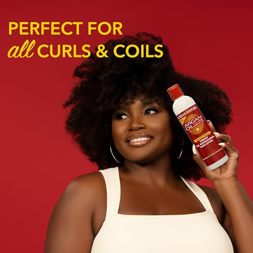 Creme of Nature Creamy Oil Moisturizing Hair Lotion restores moisture, combats frizz, and helps protect against breakage for all hair types. This oil-rich, hydrating hair lotion is infused with 100% Organic Argan Oil from Morocco, leaving strands soft, smooth, and manageable while enhancing natural shine. Perfect as a moisturizing lotion for textured hair, daily hair lotion for black women, or argan oil leave-in moisturizer, it also works as a frizz control hair cream, detangling lotion for thick hair, and protective styling hair lotion. Ideal for natural curls, twist outs, braids, buns, relaxed styles, or daily moisturizing routines, it hydrates, softens, and strengthens hair for healthy, nourished, and vibrant-looking strands.