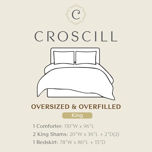 Comforter set includes oversized: 1 Comforter: 110″W x 96″L, 2 King Shams: 20″W x 36″L + 2″D , 1 Bedskirt: 78″W x 80″L +15″D