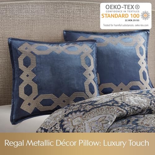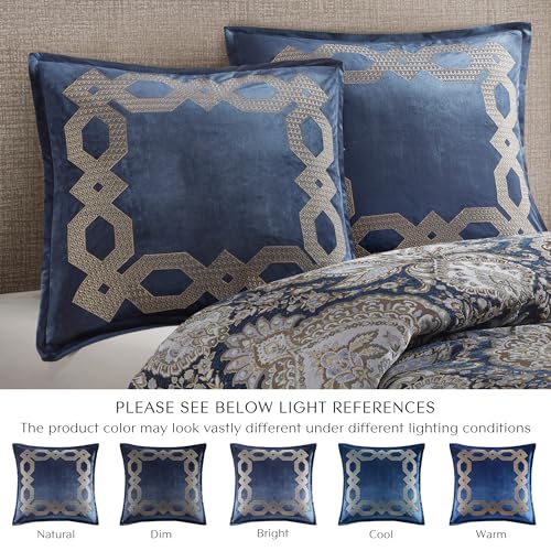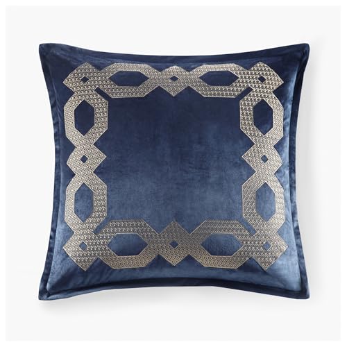 Croscill Classics Velvet Euro Sham, Regal Geometric Metallic Embroidery Design with Flange, Soft Velvet 26″ x 26″ Pillow Cover, Hidden Zipper Closure (Cushion NOT Included) Clermont, Navy 1 Piece