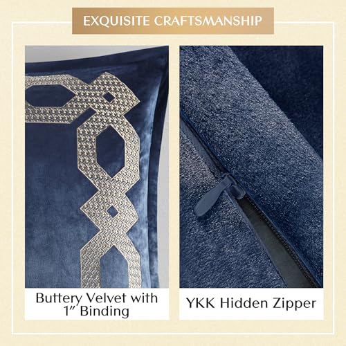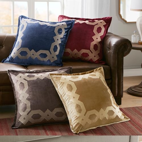 Specification: Croscill Classics Velvet Euro Sham, Regal Geometric Metallic Embroidery Design with Flange, Soft Velvet 26″ x 26″ Pillow Cover, Hidden Zipper Closure (Cushion NOT Included) Clermont, Navy 1 Piece
