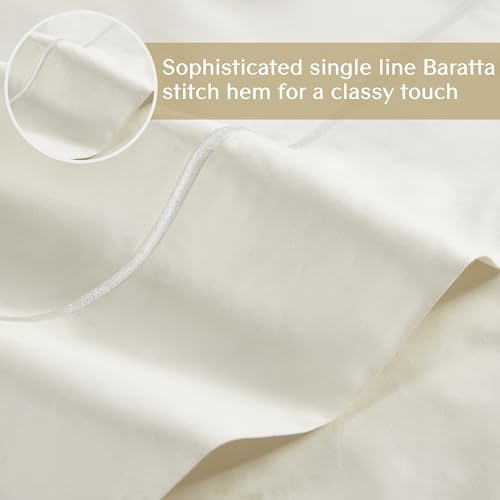 Croscill Egyptian Cotton Sheet Luxuriously Soft 500TC Cotton Sheets, Fitted Deep Pocket Sheet Set Fits Up to 18″ Mattress, All Seasons 100% Certified Egyptian Cotton Bed Sheets, King Ivory 4 Piece