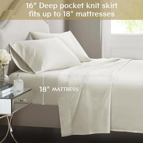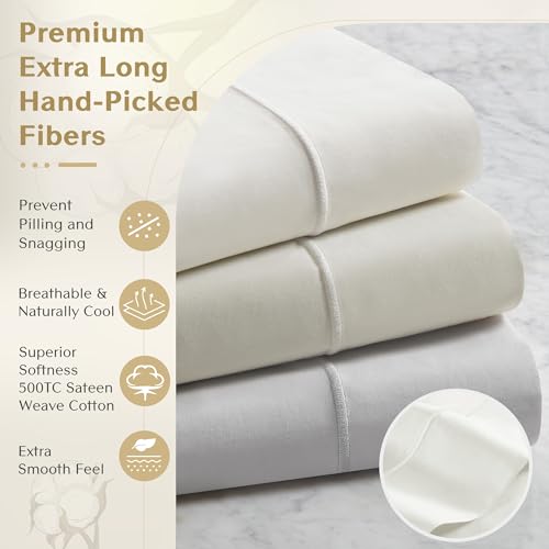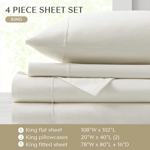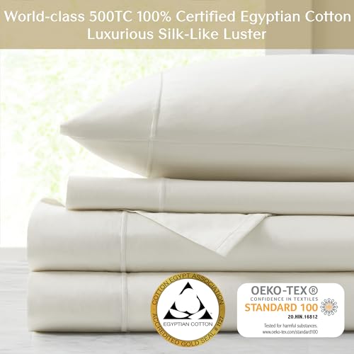 Specification: Croscill Egyptian Cotton Sheet Luxuriously Soft 500TC Cotton Sheets, Fitted Deep Pocket Sheet Set Fits Up to 18″ Mattress, All Seasons 100% Certified Egyptian Cotton Bed Sheets, King Ivory 4 Piece