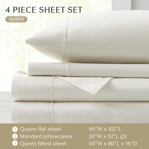 Specification: Croscill Egyptian Cotton Sheet Luxuriously Soft 500TC Cotton Sheets, Fitted Deep Pocket Sheet Set Fits Up to 18″ Mattress, All Seasons 100% Certified Egyptian Cotton Bed Sheets, Queen Ivory 4 Piece