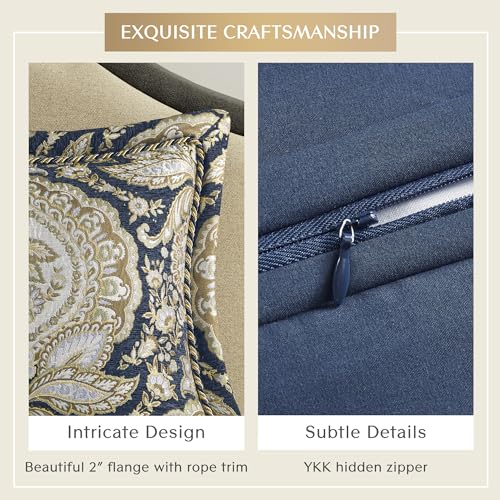 Specification: CROSCILL King Comforter Set, Luxe Chenille Jacquard Medallion, Soft Microfiber Twill Comforter & Shams, Bedskirt, Valentina, Navy 4 Piece