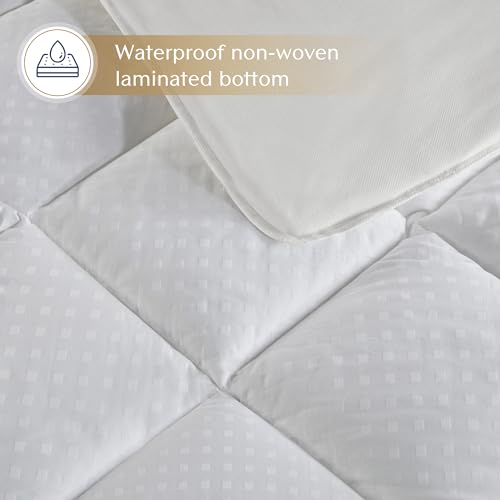Croscill Queen Mattress Pad Cotton Bed Protector Waterproof Mattress Pad, Diamond Quilted Cover, Overfilled, Breathable Mattress Topper, Fitted Pocket Fits Up to 18″, Easy Care, Queen, White