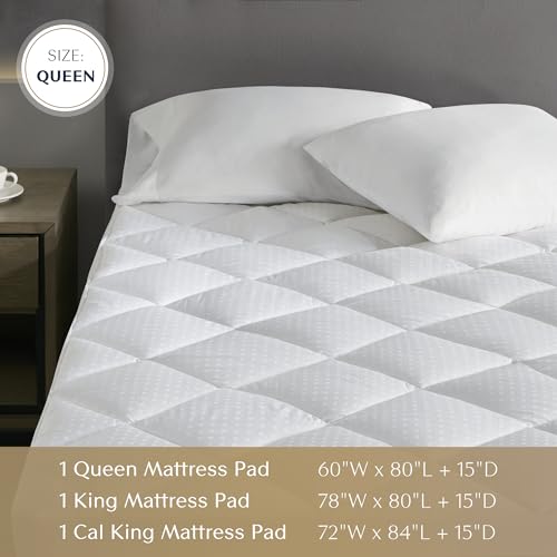 Specification: Croscill Queen Mattress Pad Cotton Bed Protector Waterproof Mattress Pad, Diamond Quilted Cover, Overfilled, Breathable Mattress Topper, Fitted Pocket Fits Up to 18″, Easy Care, Queen, White