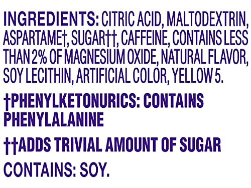 Crystal Light Naturally Flavored Citrus On-The-Go Powdered Drink Mix with Caffeine is a deliciously fruity drink you can enjoy anywhere. With zero grams of sugar and 10 calories per packet, Crystal Light is a sweet alternative to juice and soda and has 90 percent fewer calories than leading beverages (this product 10 calories, leading beverages 70 calories), so you don’t have to choose between taste and calories. Each sugar free drink mix packet also has 60 milligrams of caffeine so you can be at your best all day long. Each 0.09 ounce individual packet in this 10 count box of powdered fruit drink mix fits easily easily in your bag, desk, or car, so you can enjoy a refreshing glass of Crystal Light anywhere. Simply empty one packet into a bottle of water or a glass with 2 cups of water, shake or stir, and enjoy! All the flavor and only 10 calories per packet… just the way you like it.