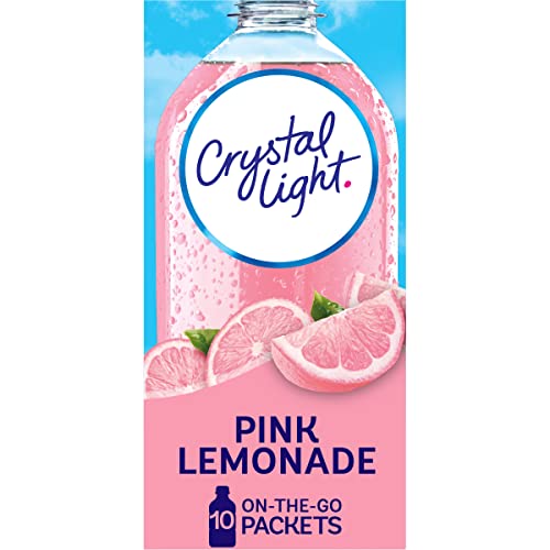 Crystal Light Naturally Flavored Pink Lemonade On-The-Go Powdered Drink Mix is a refreshing beverage you can enjoy at any time of day. With zero grams of sugar and 10 calories per packet, Crystal Light is a sweet alternative to juice and soda and has 90 percent fewer calories than leading beverages (this product 10 calories, leading beverages 70 calories), so you don’t have to choose between taste and calories. It’s also made with natural flavors for a refreshingly smooth taste. Each 0.13 ounce individual packet in this 10 count box of powdered lemonade drink mix is perfectly portioned to flavor a bottle of water with Crystal Light sugar free lemonade, so you can enjoy the flavor on the go. Simply mix one lemonade packet with a bottle or glass of water, shake or stir, and enjoy! All the flavor and only 10 calories, just the way you like it.