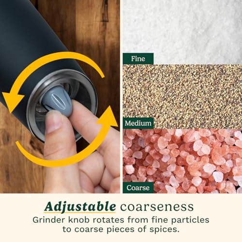 AUTOMATIC OPERATION: This gravity grinder set is easy to use with one hand, simply turn upside down and get fresh ground salt or pepper.