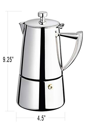 Specification: Cuisinox COF-10R Roma 10-Cup Stainless Steel Stovetop Moka Espresso Maker