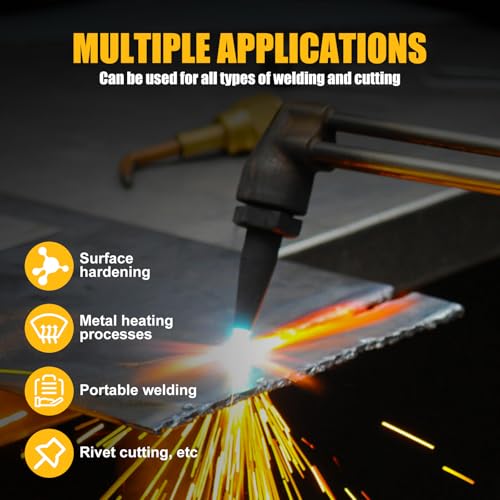 MULTIPLE APPLICATIONS: The oxygen and acetylene torch kit can be used for all types of welding and cutting such as surface hardening and metal heating processes, portable welding, rivet cutting and more.