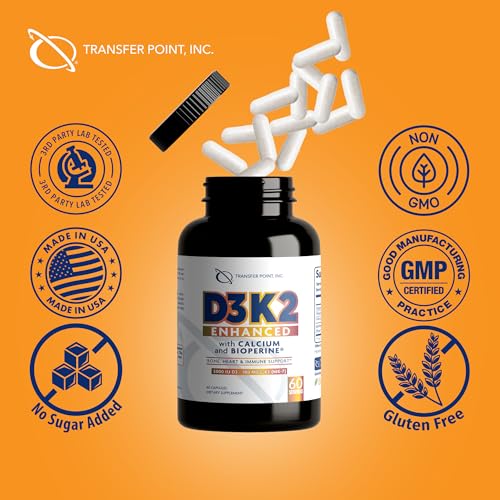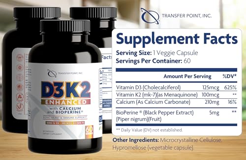 Enhanced Formula for Maximum Support: Unlike standard Vitamin D3 K2 supplements, Transfer Point D3K2 Enhanced includes Calcium for extra bone strength and BioPerine to improve absorption, so you get more from every capsule.