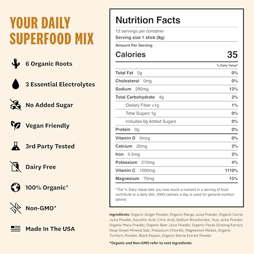 Specification: Daily Wellness Shots l Turmeric & Ginger Shot Powder Drink Mix – Immunity and Hydration- 3 Essential Electrolytes & 6 Organic Roots – Vitamin C Immune Support Blend (12 Servings)