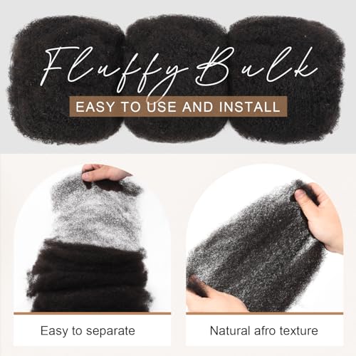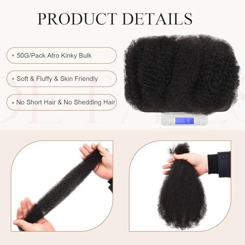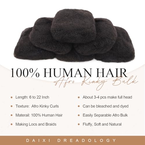 Specification: DAIXI 50 Gram Afro Kinkys Bulk Human Hair, Fluffy Soft Kinky Curly Bulk for Dreadlocks Repairing, Micro Twist Braiding, Length and Thickness Extending, Blend Seamlessly with African hair (1B, 14 Inch)