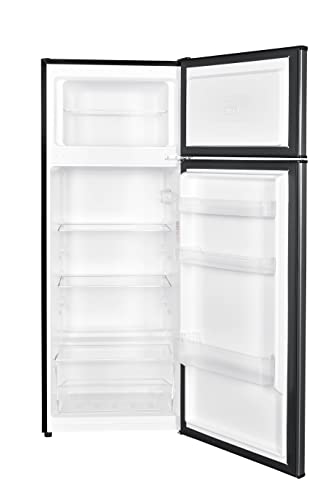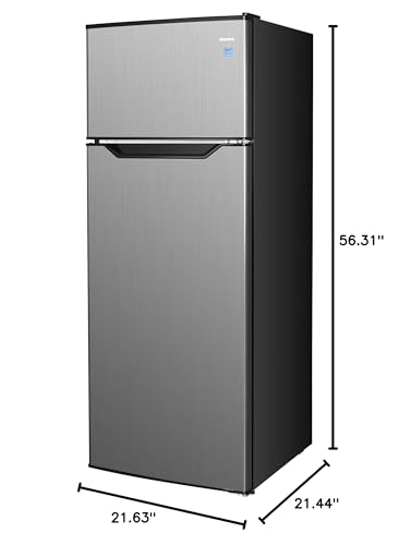 Discover the styling and simplicity of Danby’s 7.4 cubic feet (210 L) stainless-steel top-mount refrigerator, perfect for small space living in a condo, apartment, or townhouse! Reduce your electricity bill and save on energy with this model. Avoid clutter with two adjustable glass shelves in the fridge and a top-mount freezer section with one adjustable wire shelf. This model also comes with a transparent crisper bin to keep all your favorite vegetables and fruit fresh. Its reversible door hinge allows for a right or left-hand swing so you can fit this unit in almost any space, while its three-door shelves and tall bottle storage make it easy to keep your fridge organized. Choose automatic defrost for the refrigerator and manual defrost for the freezer compartment for easy maintenance all year round.