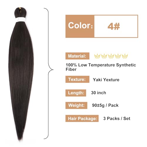Specification: Dark Brown Braiding Hair Pre Stretched 30 Inch 3 Packs 4# Pre-stretched Braiding Hair EZ Braid Synthetic Hair Extensions for Crochet Box Braids
