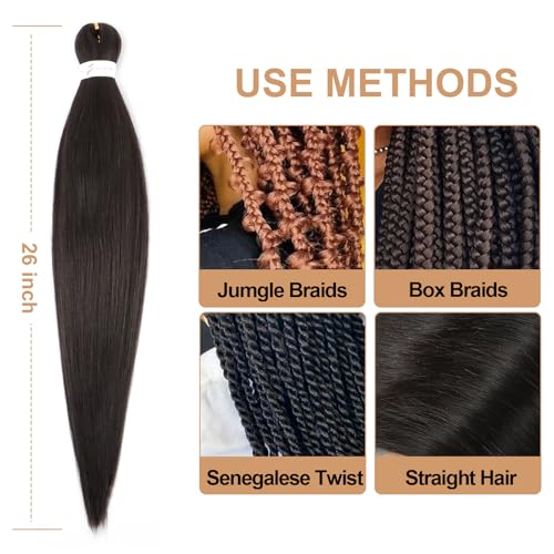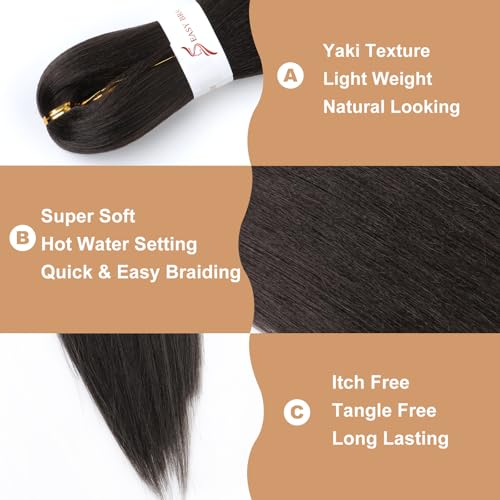 Hair Material: Dark brown pre-stretched braiding hair is made from high-quality low-temperature flame-retardant synthetic fibers. Yaki texture, natural & stylish looking, and soft touch as human Hair.