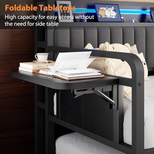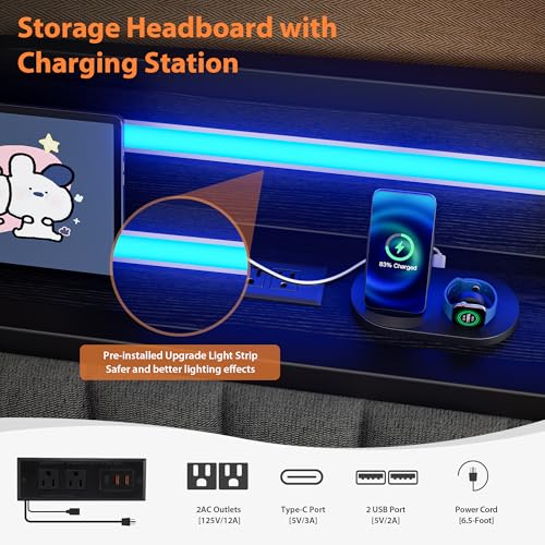 MULTI-FUNCTION RGB LED BED: The headboard is equipped with a built-in smart RGB LED light strip(Housed in a unique transparent aluminum casing, making it more reliable and providing a soft, even lighting effect compared to exposed light strips) You can control it via buttons, app, or remote, offering over 16 million colors and 20+ preset lighting effects. Whether you need warm lighting for reading, vibrant colors for a party, or a practical nightlight for children who are afraid of the dark, this LED bed frame suits every mood and need. Especially in intelligent music sync mode, the LED lights flash in rhythm with the music, providing you with an immersive home concert experience