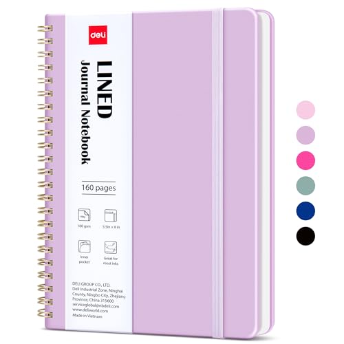 deli Lined Spiral Journal Notebook, 160 Pages, A5 (5.5″x8″) Hardcover Writing Notebook, College Ruled Spiral Bound Journal for Women & Men – Perfect for Work, School, Office & Note Taking – Purple
