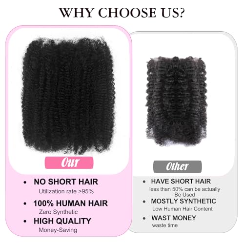Hair Material–Afro kinkys bulk human hair is made of high quality human hair, soft to the touch, no smell, can be bleached and dyed, or styled just like your own hair. Blend perfectly with your own hair, looks very natural.