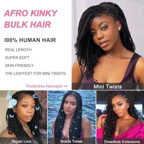 Specification: Dilekay Afro Kinkys Bulk Human Hair 2 Bundles 100g 4C Afro Kinky-Curly Human Hair Bulk for Mini Twist Dreadlock Extensions Locs Repair Soft Kinky Human Braiding Hair 18 Inch Natural Black