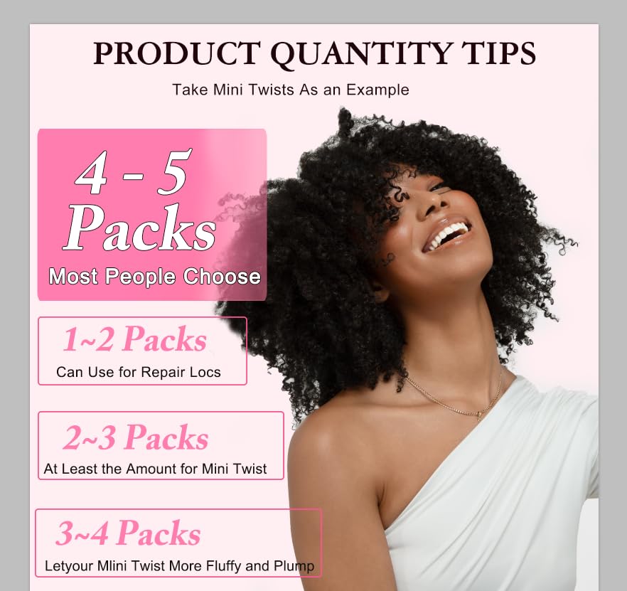 Tips–If you want to dye your hair, please choose natural hair color. All other hair colors have already been color treated, so it is not advisable to color again. Simple maintenance can last several months in mini twist styles before needing to be redone.