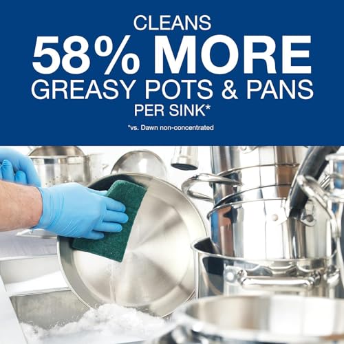 Dawn Professional dishwashing detergent with long-lasting suds cleans 58percent more greasy pots and pans per sink (vs. Dawn non-concentrated)