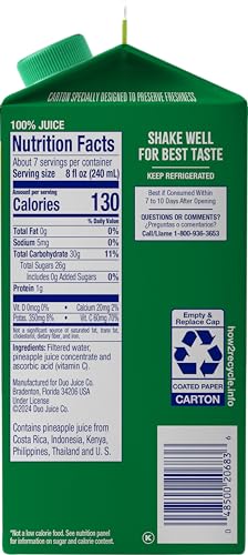 Savor the pure, refreshing flavor of Dole 100% Juice Pineapple. Made with real pineapple juice, this drink is an excellent source of Vitamin C for everyday enjoyment.