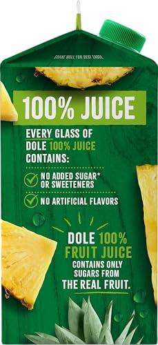 Every glass of Dole 100% Juice contains no sugar added and no artificial sweeteners