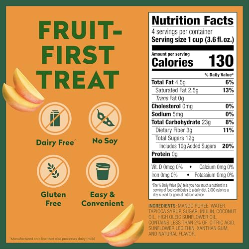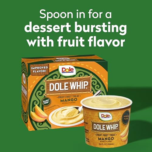 Specification: Dole Whip Mango Frozen Fruit Treat – (4 Pack) 3.6 fl oz Carton – Fruit First Frozen Treat – Refreshing & Velvety Dessert or Snack