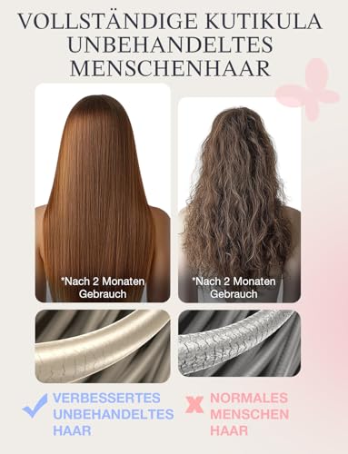 Pure Virgin Hair Extensions: Crafted from the finest 100% Premium Virgin Human hair, the extensions offer an undetectable blend, perfect for fine or thinning hair. No tangles, minimal shedding, no split ends or kont. Let you enjoy the gorgeous appearance