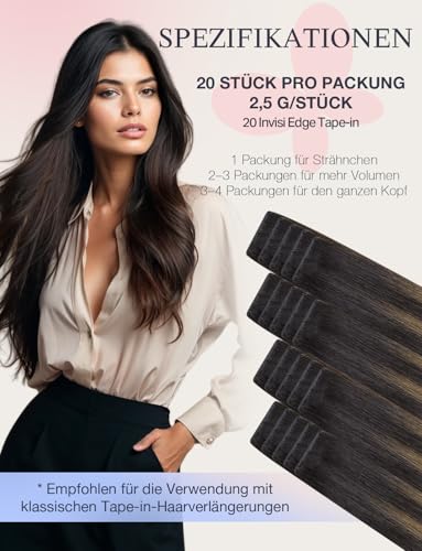 Specification: DOORES Invisible Tape in Hair Extensions Human Hair Invisi Edge, Dark Brown to Chestnut Brown 10 Injection Tape-ins with 10 Injection Tape-ins 50g 18 Inch, Human Tape in Extensions