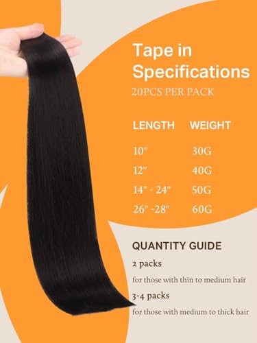 Specification: DOORES Tape in Hair Extensions Human Hair, 18 Inch 50g 20pcs Jet Black, Real Human Hair Extensions Tape in Remy Straight Skin Weft Double Side
