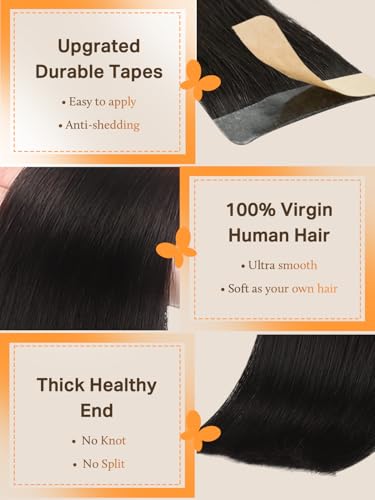DOORES Tape in Hair Extensions Human Hair, 18 Inch 50g 20pcs Jet Black, Real Human Hair Extensions Tape in Remy Straight Skin Weft Double Side