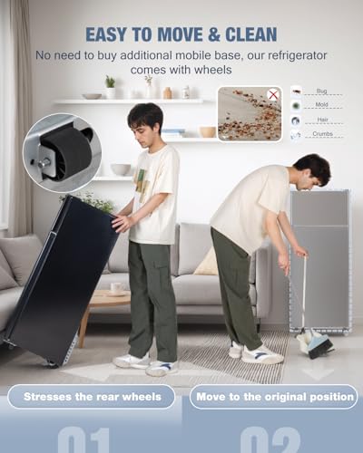 [Energy-Saving Design] – refrigerate responsibly, for a greener and sustainable home. Our small refrigerator with freezer consumes only 0.47 kWh per day, costing less than 0.1$ to operate daily. The small fridge is designed with a thick microcellular foam layer and a one-piece stretched case. It reduces room temperature impact, preserving coldness for longer and minimizing energy usage.