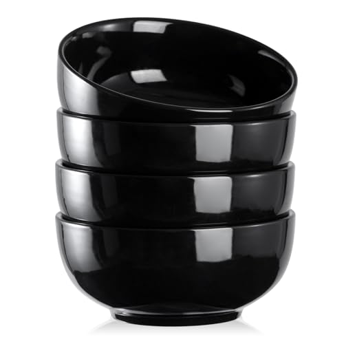 DOWAN 22 OZ Ceramic Soup Bowls & Cereal Bowls – 6″ Classic Bowls Set of 4 for Soup, Cereal, Oatmeal, Fruit, Rice – Dishwasher & Microwave Safe (Black)