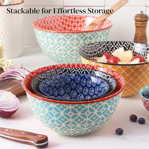 DOWAN Mixing Bowls, Ceramic Mixing Bowls for Kitchen, Colorful Vibrant Nesting Bowls for Cooking, Baking, Prepping, Serving, Salad, Housewarming Gift, Microwave Dishwasher Safe, 3.7/2/1 Qt, Set of 3