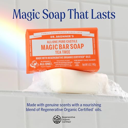 Specification: Dr. Bronner’s Pure-Castile Magic Bar Soaps – Made with Regenerative Organic Certified Oils – For Face, Body, Hair- Vegan Soap Bars for Men & Women – Tea Tree, 2 pack, 5 oz