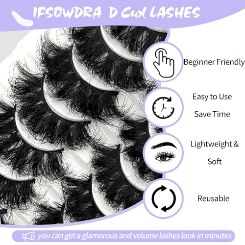 Specification: Dramatic Fluffy Lashes Mink 8D Volume Curly Fake Eyelashes Wispy Full 20mm/25mm Faux Mink Long Strip Lashes 20 Pairs Pack