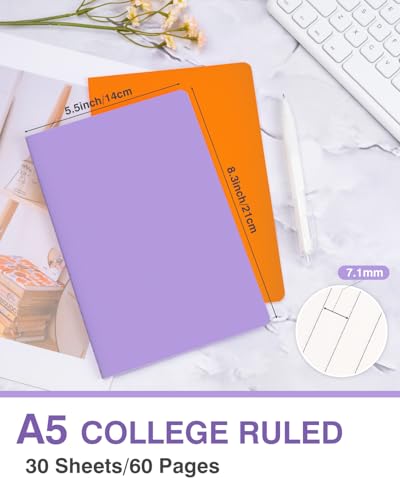 Specification: Dynta A5 Journals 45pcs 15 Colors Lined Notebooks Bulk College Ruled 5.5 x 8.3 Inches for Class or Conference, 30 Sheets/60 Pages