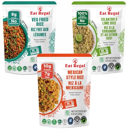 Specification: Eat Regal Heat & Eat Rice – 3 Flavor Variety Pack (6 Pack, 8.8 oz Each) – Mexican, Vegetable Fried, Cilantro & Lime – Microwave-Ready in 90 Seconds – Non-GMO, Gluten-Free